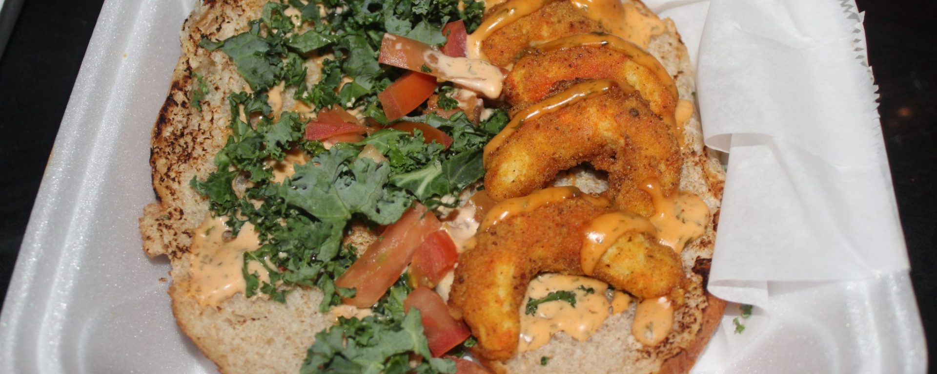 The first bite into my Shrimp Po’ Boy was heavenly! I am not kidding around guys and gals! It was orgasmic beyond belief! I did not expect for the animal-free shrimp to taste so much like shrimp! The texture was on point! The sauce was really good too and the texture of the grilled bread was banging!