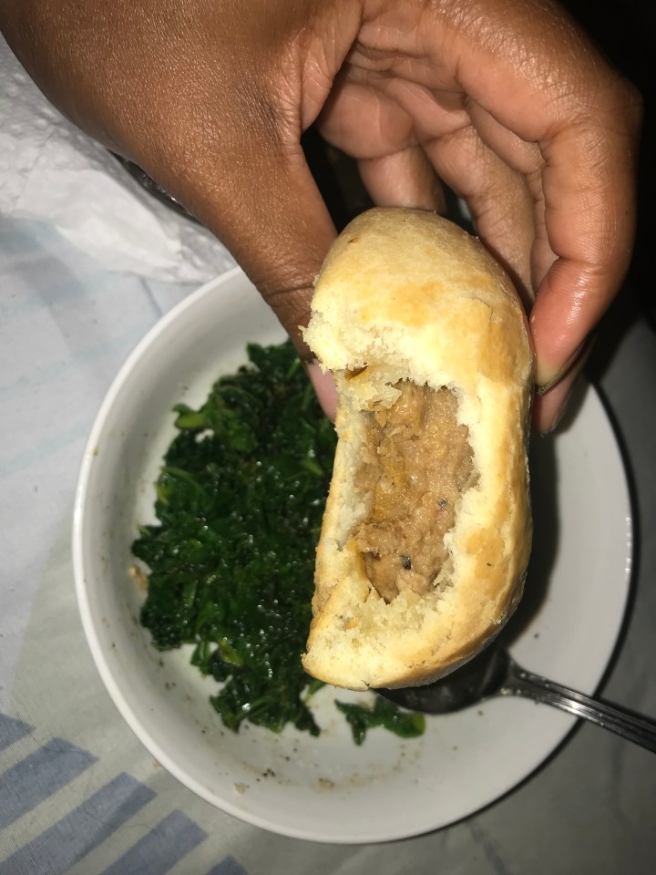 The pastry was so flaky and buttery! I loved that more than the inner contents of the pot pie. It didn’t look like the picture, but it was cheesey and delicious! The picture doesn’t do it justice y’all! I’m sure you can tell I enjoyed it by the amount of exclamation points.