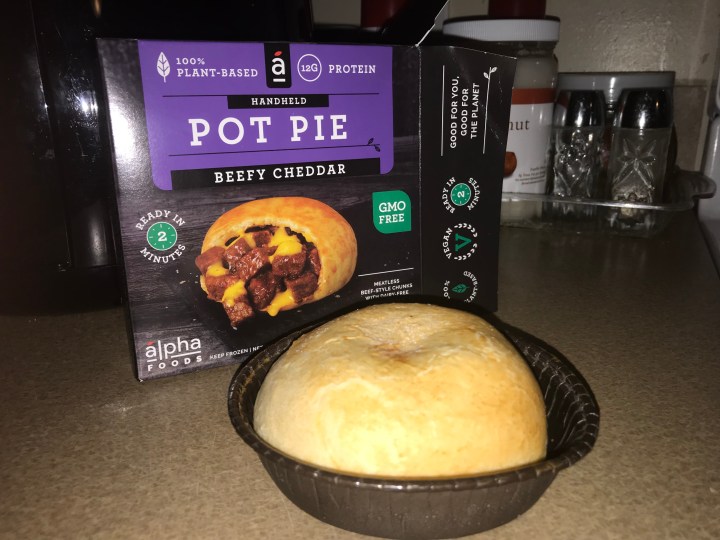 Last week, I grabbed the Alpha Foods Beefy Chedd’r Pot Pie to try it out for you all. It is 100% Plant Based and GMO free!